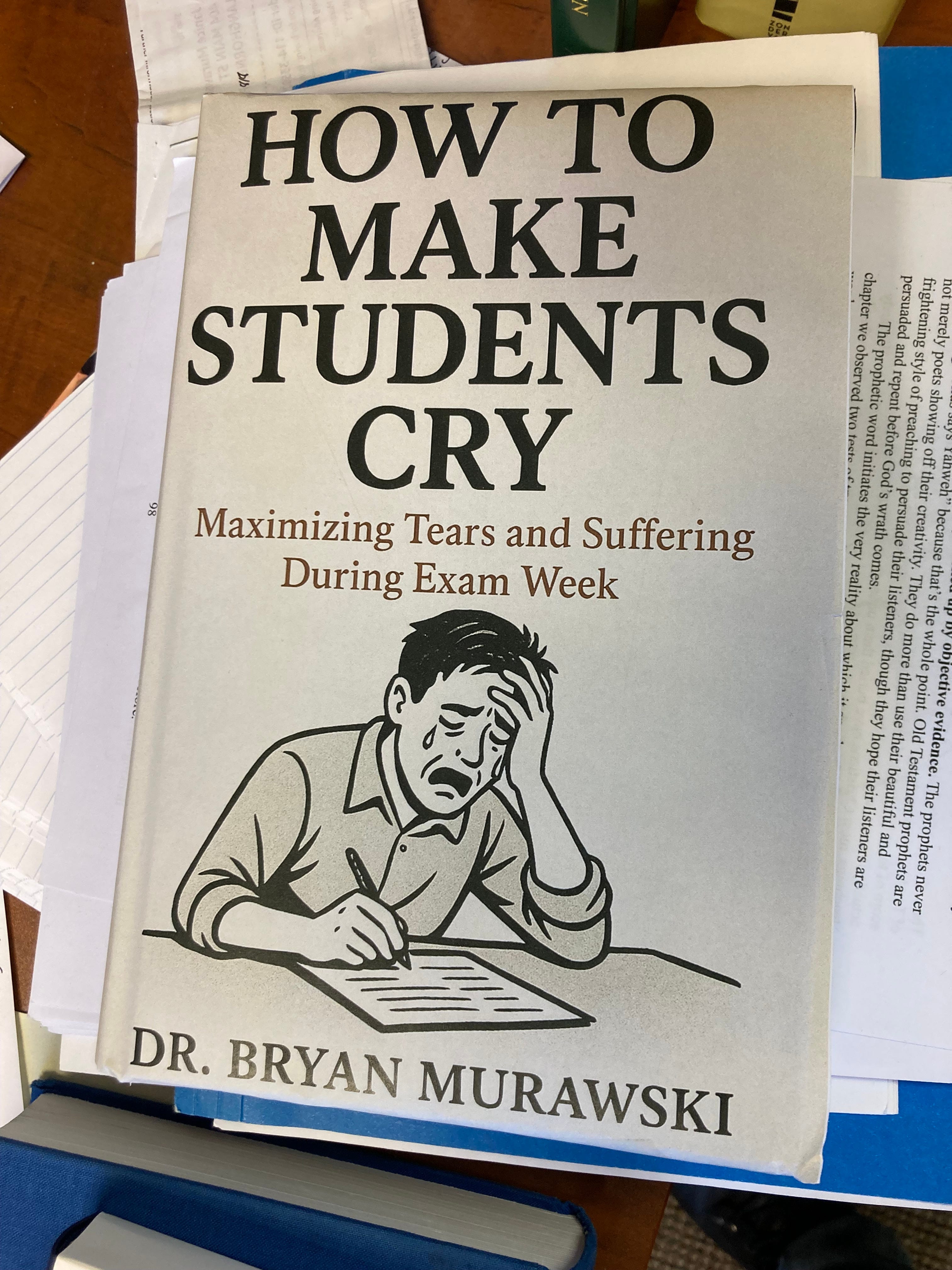 My good friend is working on a book idea that he shared with students during exam week. It’s gonna’ be a hit I think.
